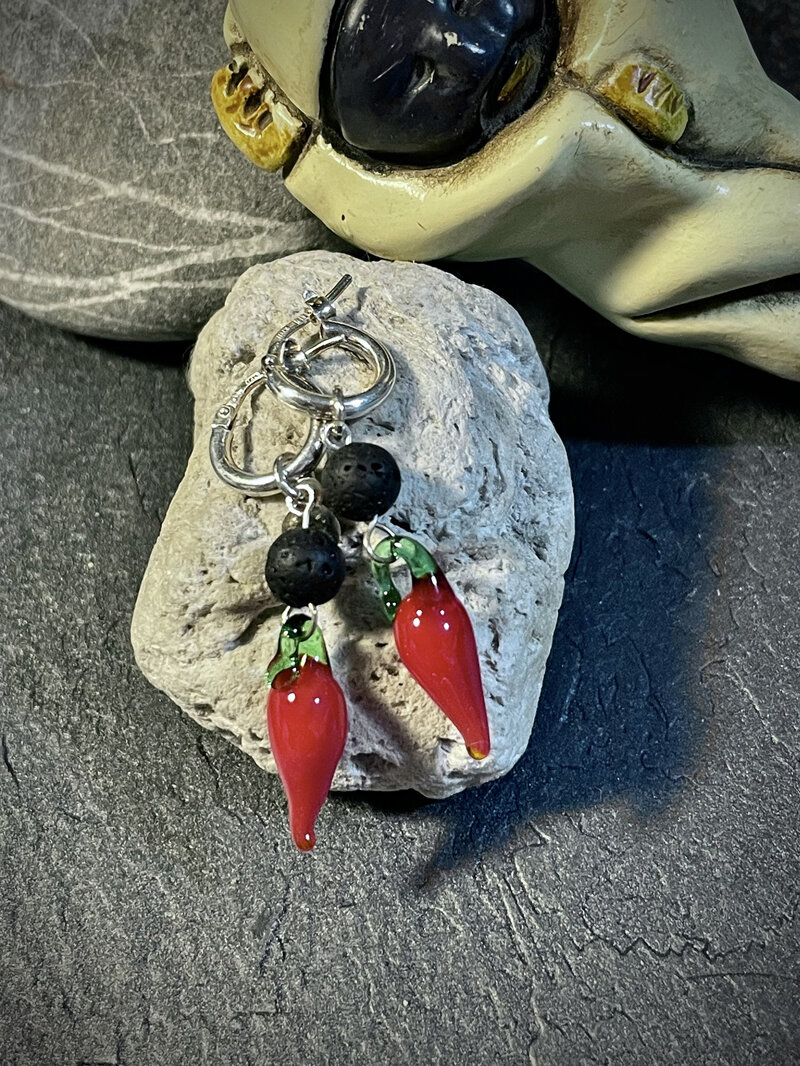 Orecchini cerchietto (1 cm) con pietra lavica, cornetto lamurrina®️e Argento 925